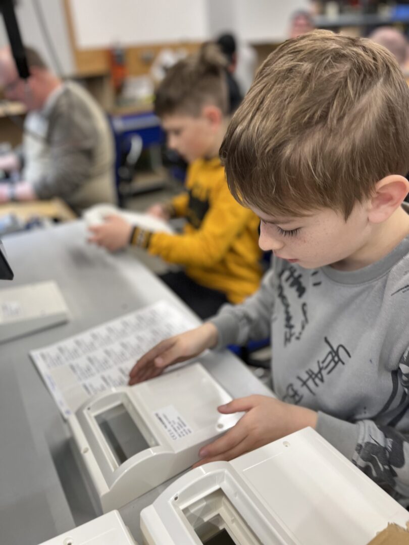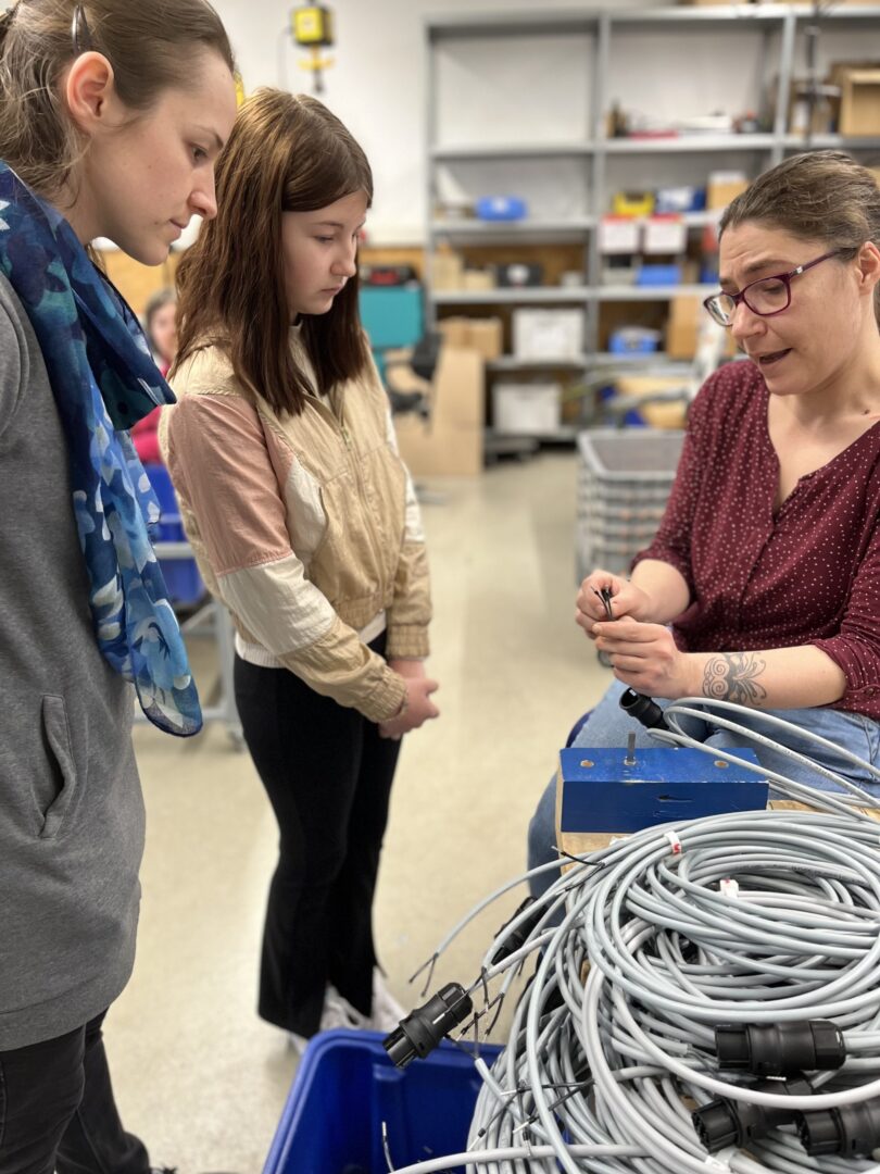 Dass in der Werkstatt, in der 78 Menschen mit Behinderung tätig sind, industriell gearbeitet wird, erlebten die Schülerinnen und Schüler schon gleich zu Beginn. „Boah, ein 3D-Drucker!“ Als Betz die Gruppe dann durch die gesamte Werkstatt führte, kamen die Kinder aus dem Staunen kaum heraus. Kabelkonfektionierung, Produktion von Sicherungskästen für Wohnwagen – alles gefertigt von Menschen mit Behinderung.